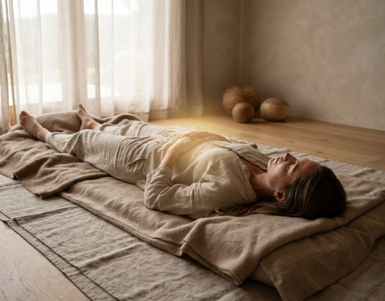 Bu sürece bedenin regülasyon kapasitesini destekleyen masaj ve dokunuş pratikleri entegre edilir. Bu pratikler, sinir sisteminin güvenli bir şekilde gevşemesine ve bedenin kendi ritmine yeniden uyumlanmasına yardımcı olur.